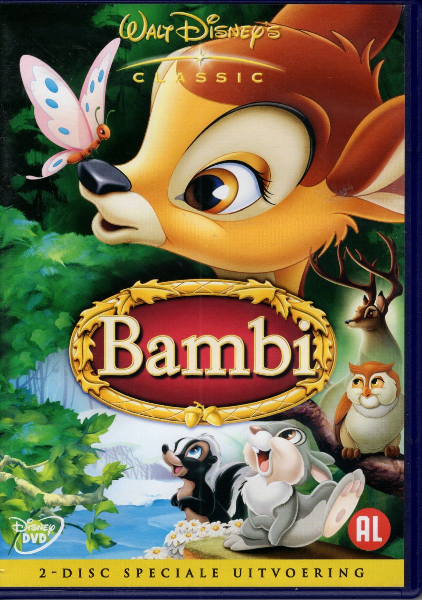 Bambi DVD (1942) van Disney, met de stemmen van Donnie Dunagan, Peter Behn, Stan Alexander, Cammie King, Will Wright, Hardie Albright, Ann Gillis, Tim Davis, Sam Edwards.