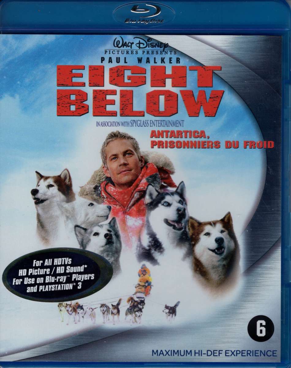 Jerry Shepard (Walker), zijn vriend Cooper (Biggs) en een ruwe geoloog (Greenwood) zijn drie leden van een wetenschappelijke expeditie op Antarctica. Door een ongeluk en hevige weerscondities zijn ze gedwongen hun team en hun slee-honden achter te laten. In de harde winter van Antarctica moeten de honden zes maanden alleen zien te overleven. Eight Below Blu-ray (2006), met Paul Walker, Bruce Greenwood, Moon Bloodgood, Jason Biggs, Gerard Plunkett, Wendy Crewson, Duncan Fraser, Dexter Bell, August Schellenberg. Eight Below is een film van Disney.