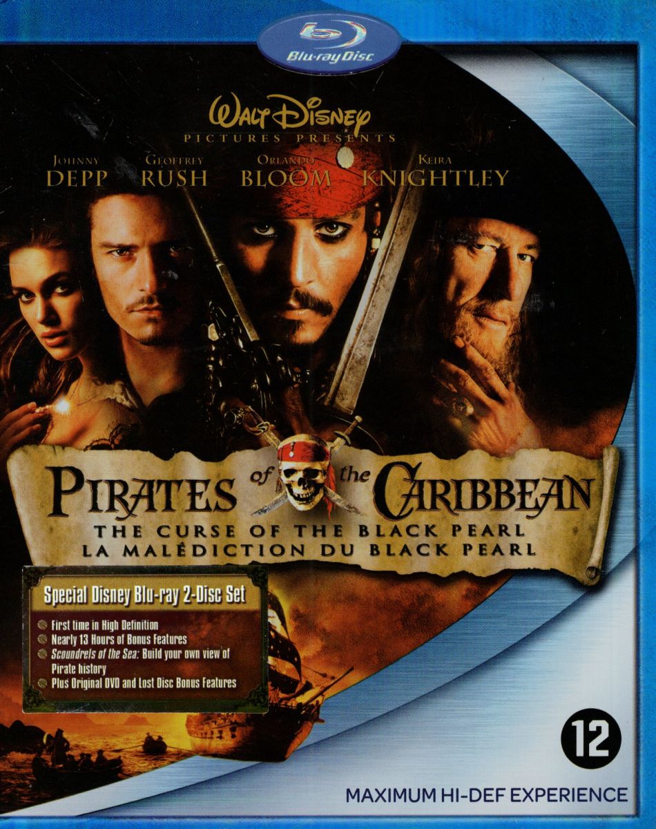 Pirates of the Caribbean: The Curse of the Black Pearl blu-ray (2003) met Johnny Depp, Geoffrey Rush, Orlando Bloom, Keira Knightley, Jack Davenport, Jonathan Pryce, Lee Arenberg, Mackenzie Crook, Damian O’Hare.