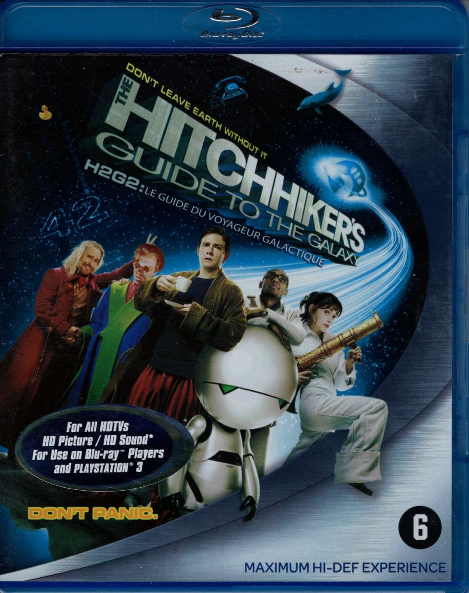 The Hitchhiker’s Guide to the Galaxy blu-ray (2005) met Martin Freeman, Yasiin Bey, Zooey Deschanel, Sam Rockwell, Alan Rickman, Anna Chancellor, Bill Nighy, Richard Griffiths, John Malkovich.