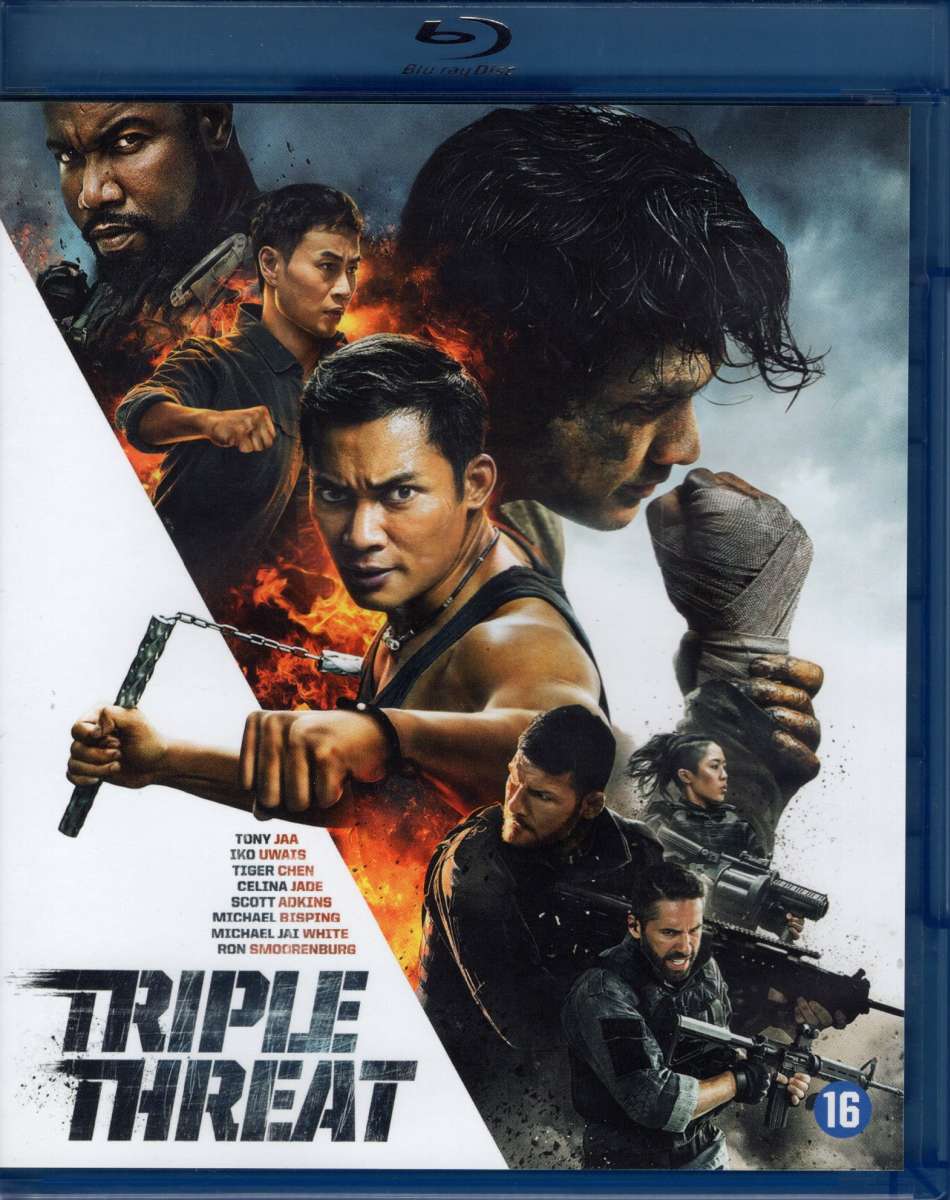 Triple Threat blu-ray (2019) met Tony Jaa, Tiger Hu Chen, Iko Uwais, Scott Adkins, Michael Jai White, Michael Bisping, Celina Jade, JeeJa Yanin, Dominiquie Vandenberg.